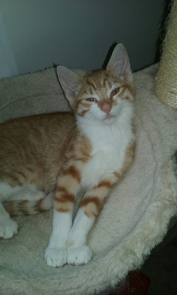Mon histoire : Je suis un très beau petit rouquinou. On m’a jeté à la rue, mais j’ai eu la chance d’être recueilli par un monsieur qui connaissait l’école du chat. Je ne comprends pas pourquoi on m ‘a abandonné car je suis adorable et en plus je me trouve beau !