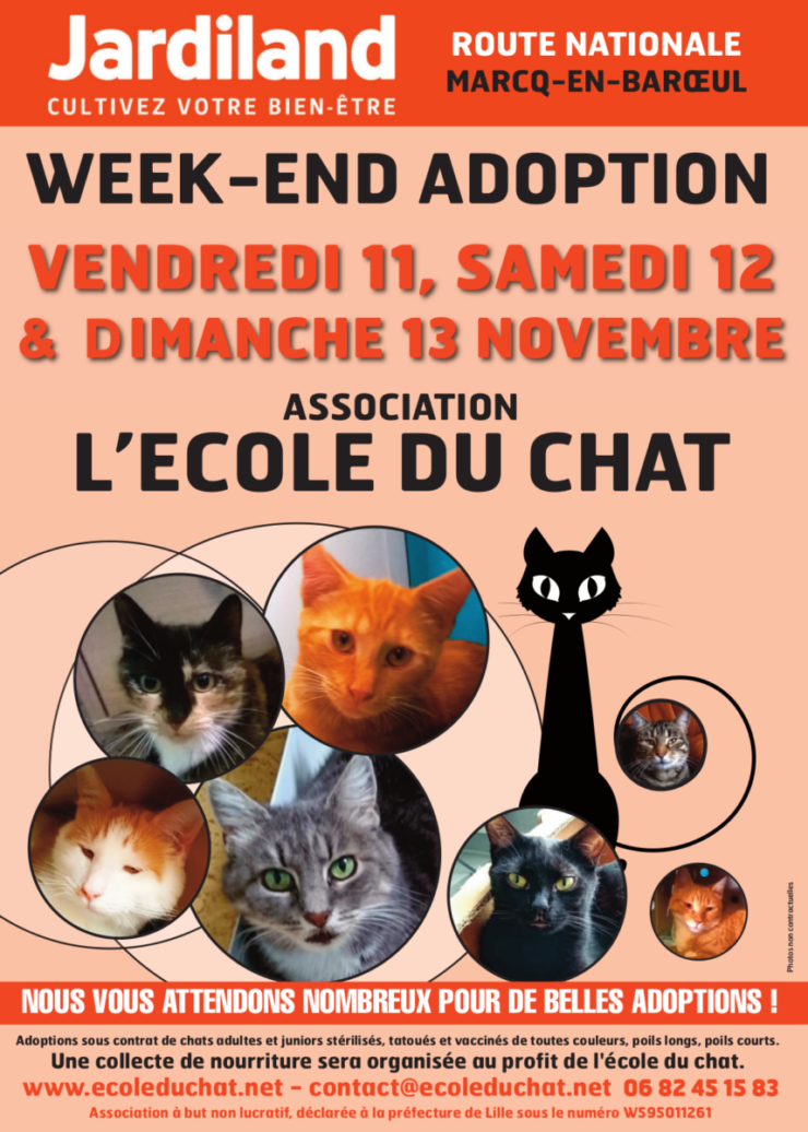 Les 11, 12 et 13 novembre 2016 de 10h à 18h, venez participer au grand weekend d’adoption de l’Ecole du chat de Marcq Collège.