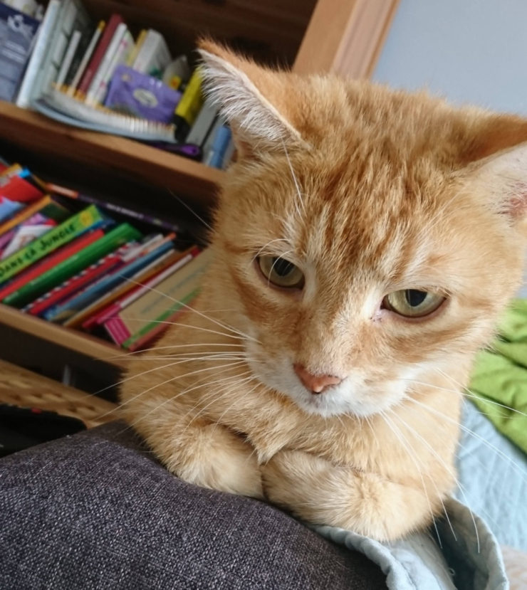 Curly a été recueilli par l’école du chat dans un état lamentable. Son dos était ouvert sur plus de 20cm, il a été soigné durant plusieurs mois pour se remettre. Il s’est montré reconnaissant de ce qui a été fait pour lui. Il garde une démarche un peu particulière.