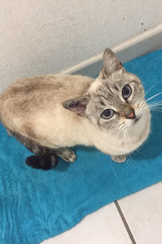 Dolly, petite chatte de 2 ans, « petit gabarit », mais très  » pot de colle » attend sa famille pour avoir plein de câlins.