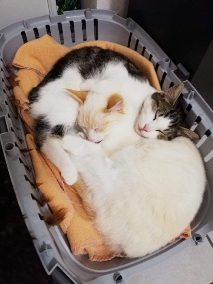 Nos deux inséparables !!! Deux mâles de 8 mois castrés et puçés… ils sont adoptables ensemble. Très câlins et gentils. Il vous reste à leur trouver un joli nom !