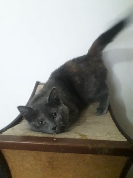 GIPSY (tricolore) et PRALINE (gris chartreux) sont deux soeurs nées en Avril 2020…elles ont donc 8 mois !!