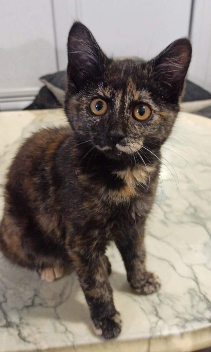 Suki, petite écaille de tortue a 3 mois.
