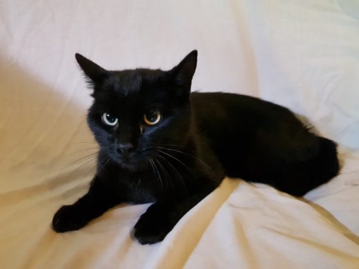 Adoptée en juillet 2019. De grands yeux de panthère noire, c’est LOLA – 2 ans et demi. Petite chatte curieuse de tout et très mignonne. Un petit extérieur sécurisé serait le bienvenu !Stérilisée et puçée.Lire la suite