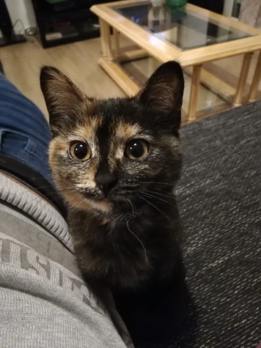 Adoptée en mai 2019 Petite minette de 4 mois, nous l’avons appelée NOVA.Encore un grand bébé..qui a besoin de gros câlins.Stérilisation et identification sous contrat Ecole du Chat à 5/6 mois.Visible à ToufflersContact : 06Lire la suite