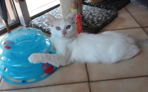 Adopté en septembre 2019 Je suis un très beau chaton male a poil mi long de 4 moisUn peu timide quand je ne connais pas Je suis très joueur j aime bcp la compagnie des autresLire la suite