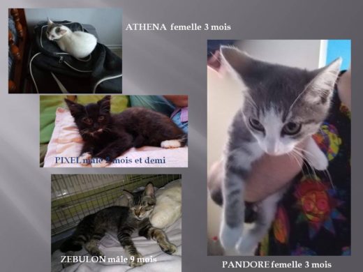 De mignons chatons à adopter : Pixel, Zébulon, Athéna et Pandore….. Très sociables et joueurs !Adoption sous contrat Ecole du chat : stérilisation et identification obligatoire à 5/ 6 mois (sauf pour Zébulon déjà castréLire la suite