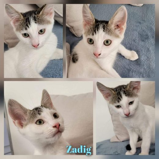 ZADIG est un petit chaton de 4 mois, très coquin,joueur,et un peu râleur,il sait déjà bien ce qu’il veut,mais il est très câlin… Il est primo vacciné. Adoption sous contrat École du chat. Castration etLire la suite