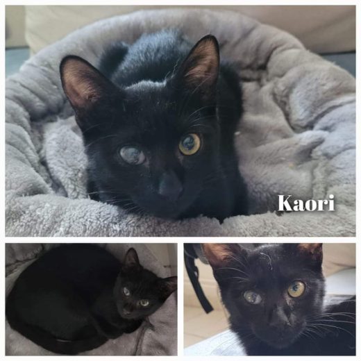 KAORI,cette petite panthère de 3mois,gentille,caline +++ Elle est en grande demande d’amour..Kaori à l’ œil droit un peu voilé,rien de grave,ce qui ne l’ empêche pas d’ être une chatonne pleine de vie. Kaori estLire la suite