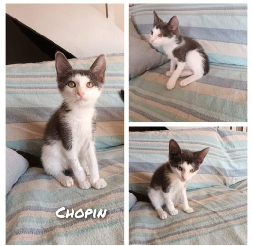 QqCHOPIN est un petit chaton de 3 mois gentil très câlin un vrai pot de colle ! il adore s’installer sur les genoux pour y dormir… Chopin est primo vacciné. Contrat sous École du chat.Lire la suite
