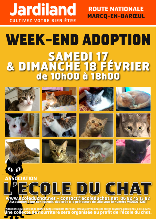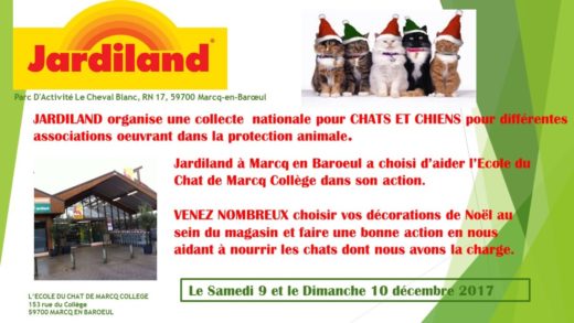 L’école du chat de Marcq organise son prochain week-end d’adoption les 7 et 8 avril 2018 au Jardiland de Marcq-En-Baroeul de 10h à 18h ! Venez nombreux pour faire de belles adoptions ! Une collecteLire la suite