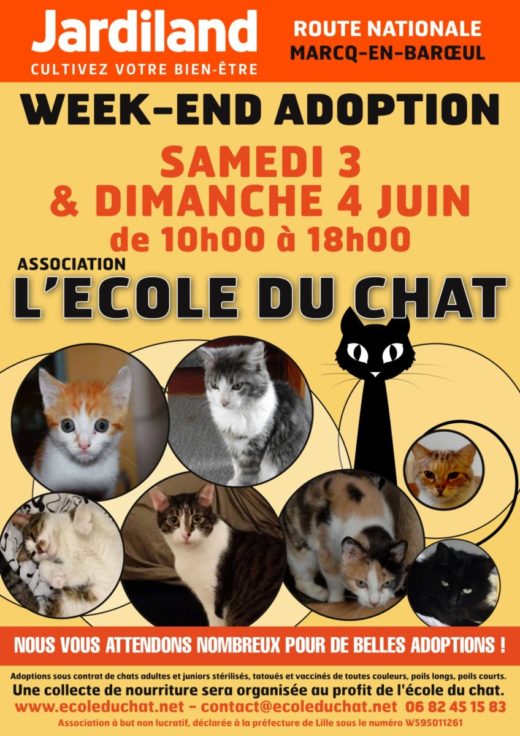Week-end d’adoption – 3 et 4 juin au Jardiland de Marcq