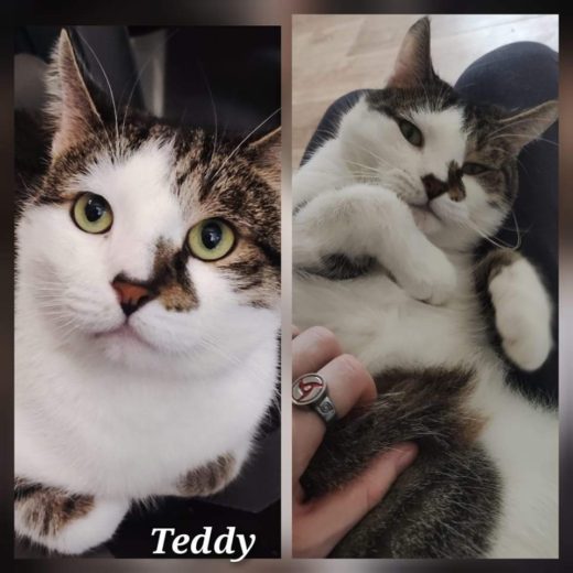 Teddy, 5 ans Mâle très très câlin (pourrait y passer des heures)et tellement gentil. Il adore dormir dans le lit si on lui autorise. Son activité préférée (après le dodo et les câlins) c’est d’allerLire la suite